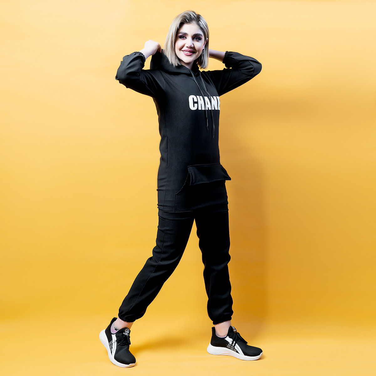 ست هودی شلوار Chanel مشکی دخترانه مدلloniya