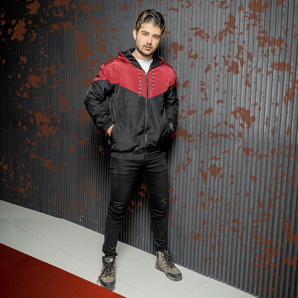 کاپشن مردانه مشکی زرشکی مدل K64