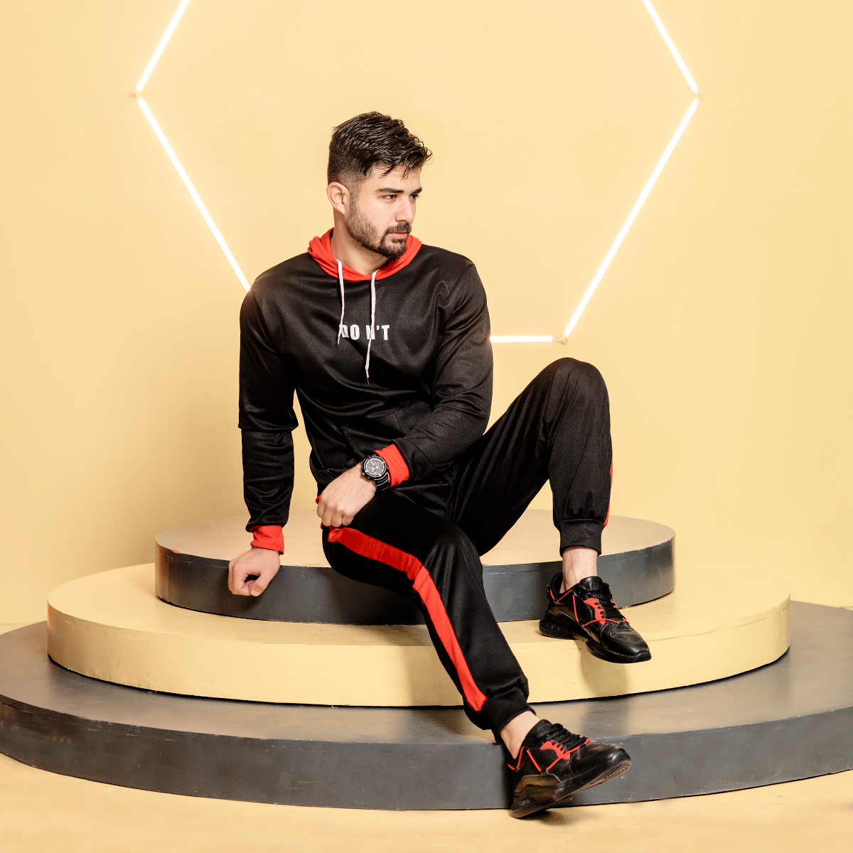 ست هودی شلوار مشکی قرمز مردانه Dontمدل Arsham