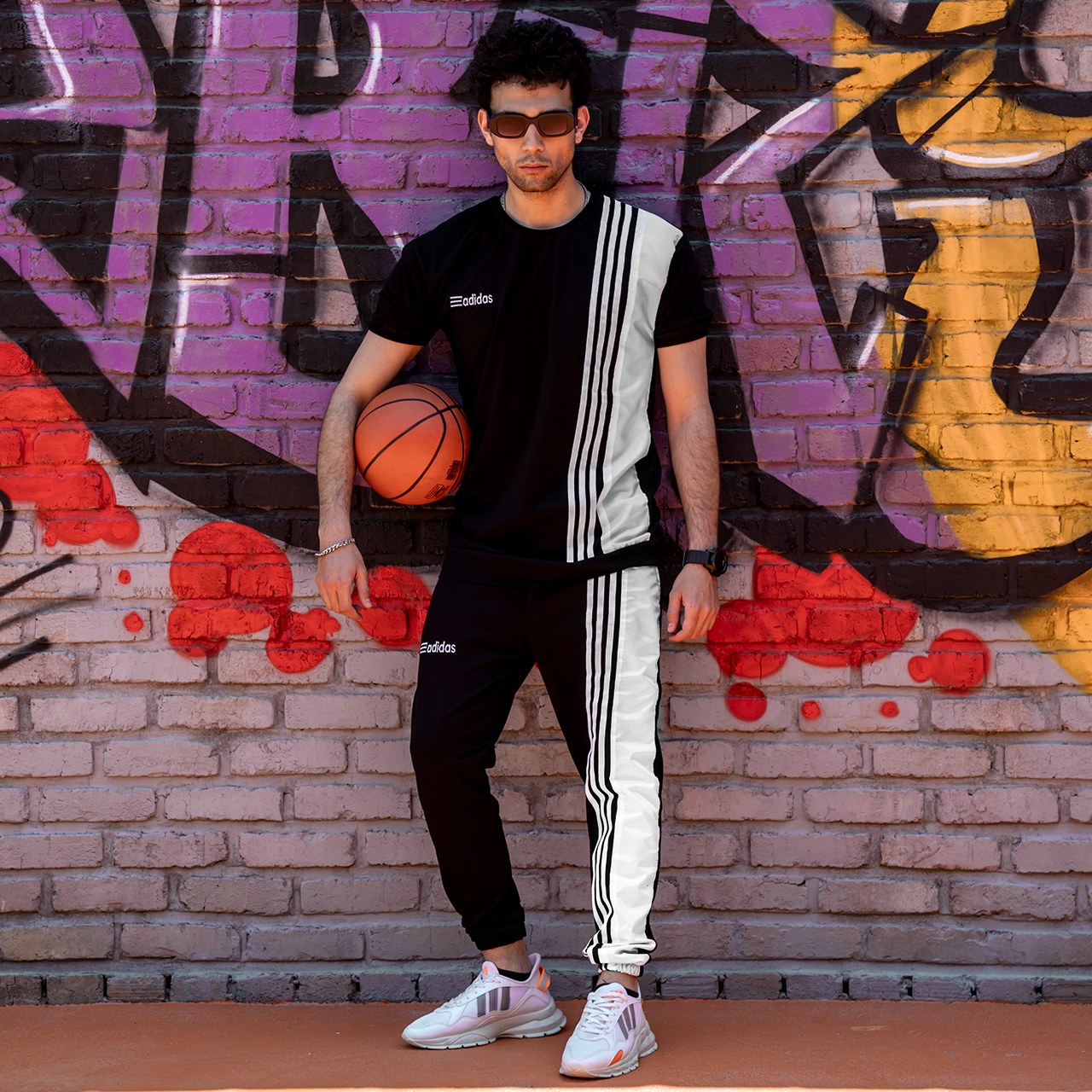 ست تیشرت شلوارآدیداس دورنگ سفید مشکی مردانه مدل b.s