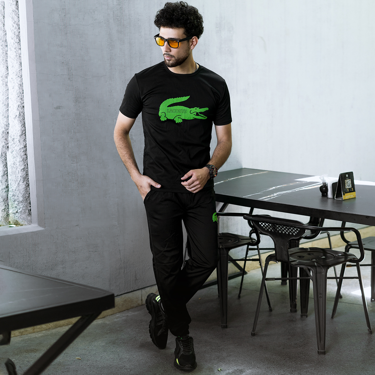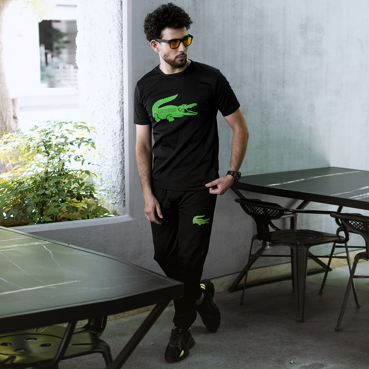 ست تیشرت شلوار لاگوست مشکی مدلRE200