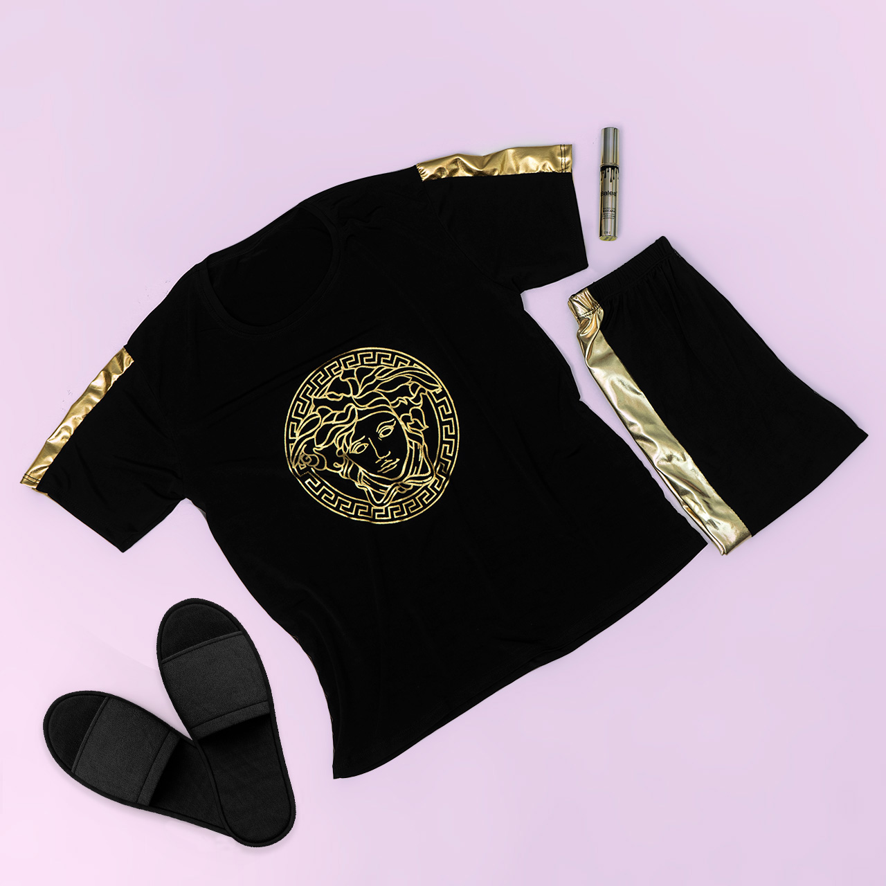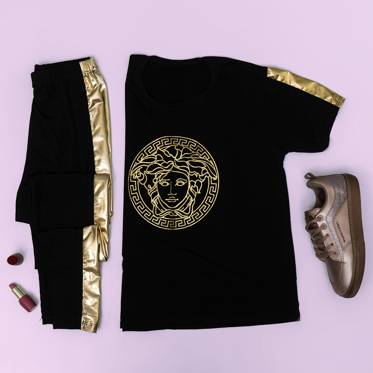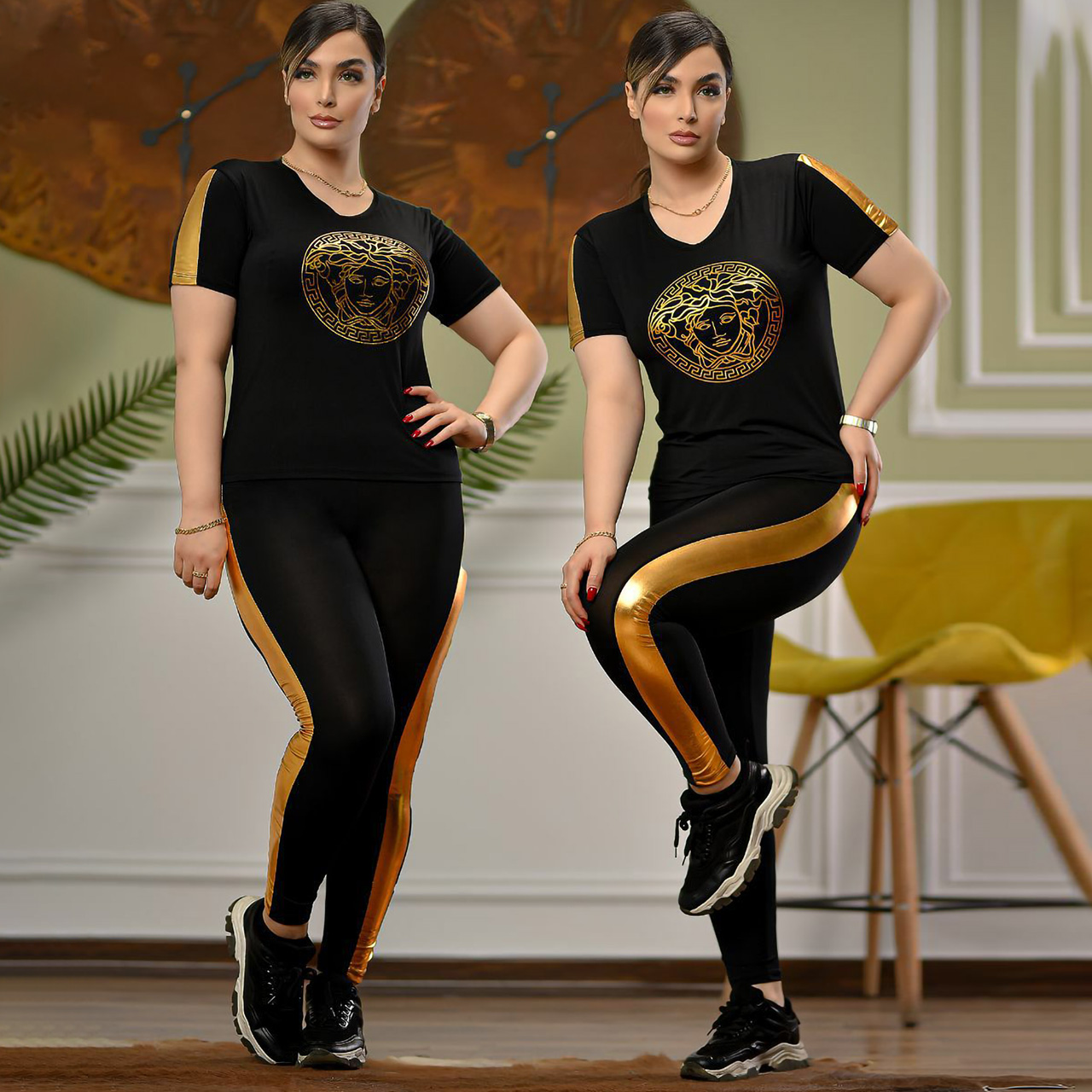 ست تیشرت و شلوار طرح ورساچه طلایی مدل Lili