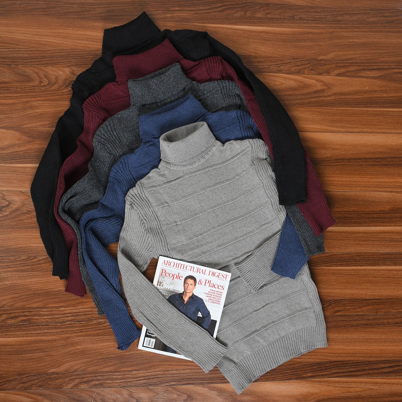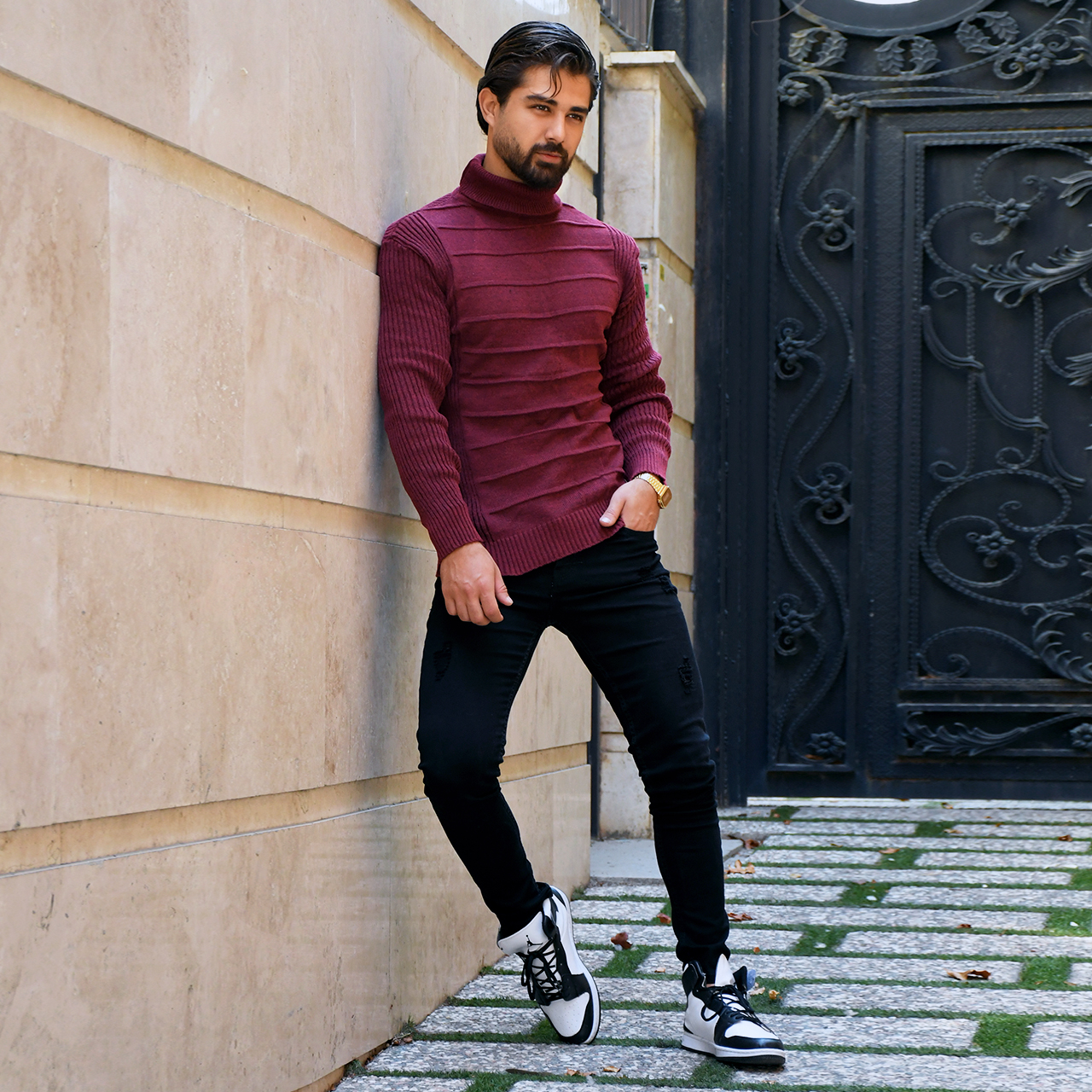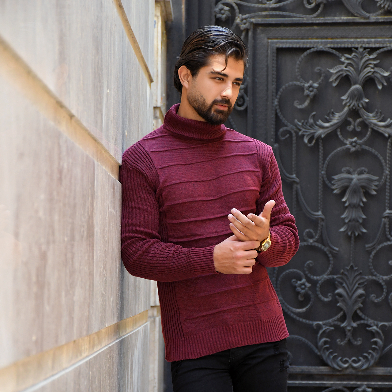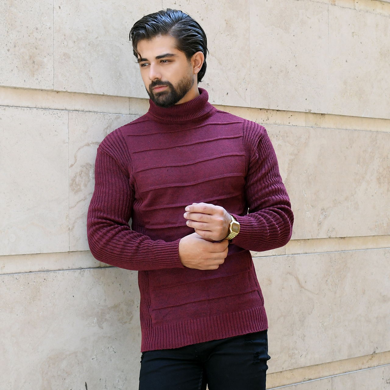 پلیور یقه اسکی زرشکی طرح کرکره ای مردانه مدلR10