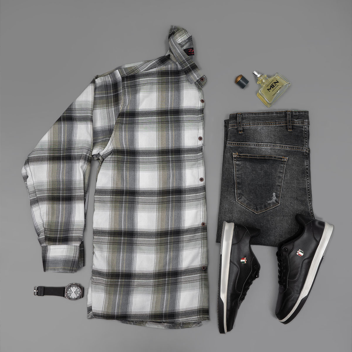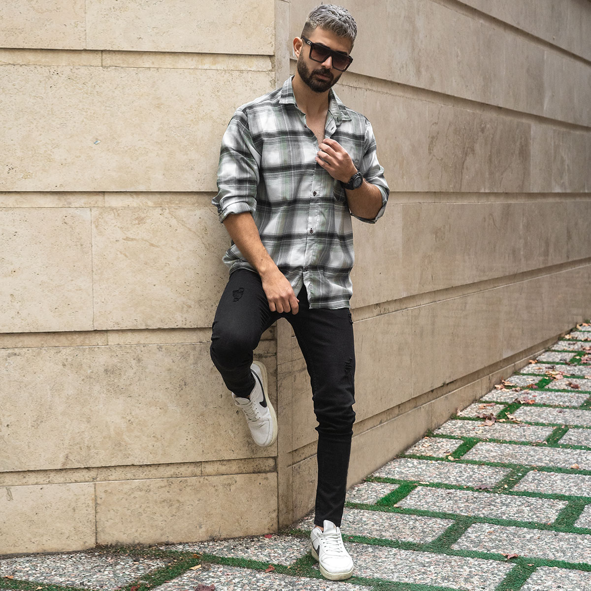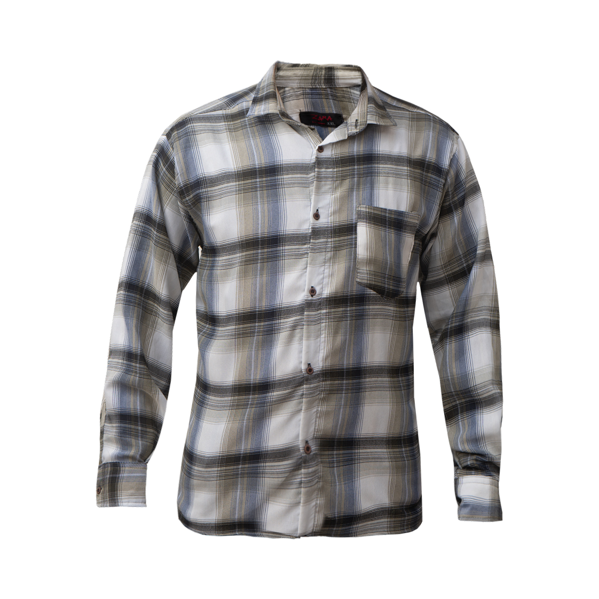 پیراهن مردانه چهارخونه سفید طوسی مدل alvand