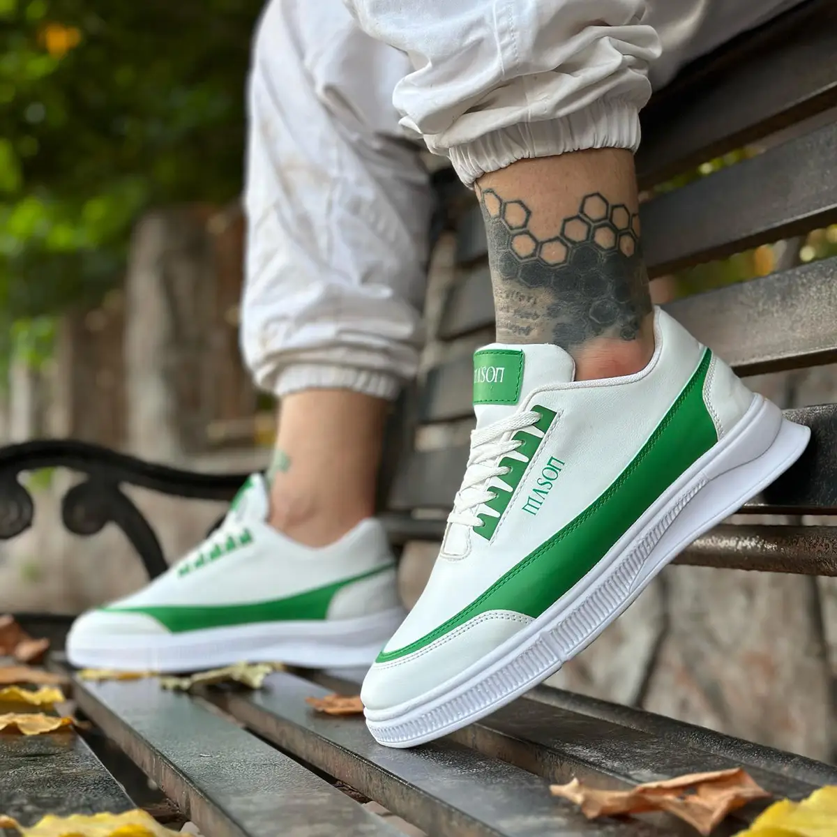 کفش تخت مردانه سفید سبز مدل Mason