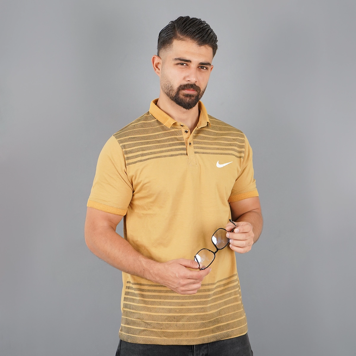 تیشرت یقه دار راه راه زرد مدل Farhan