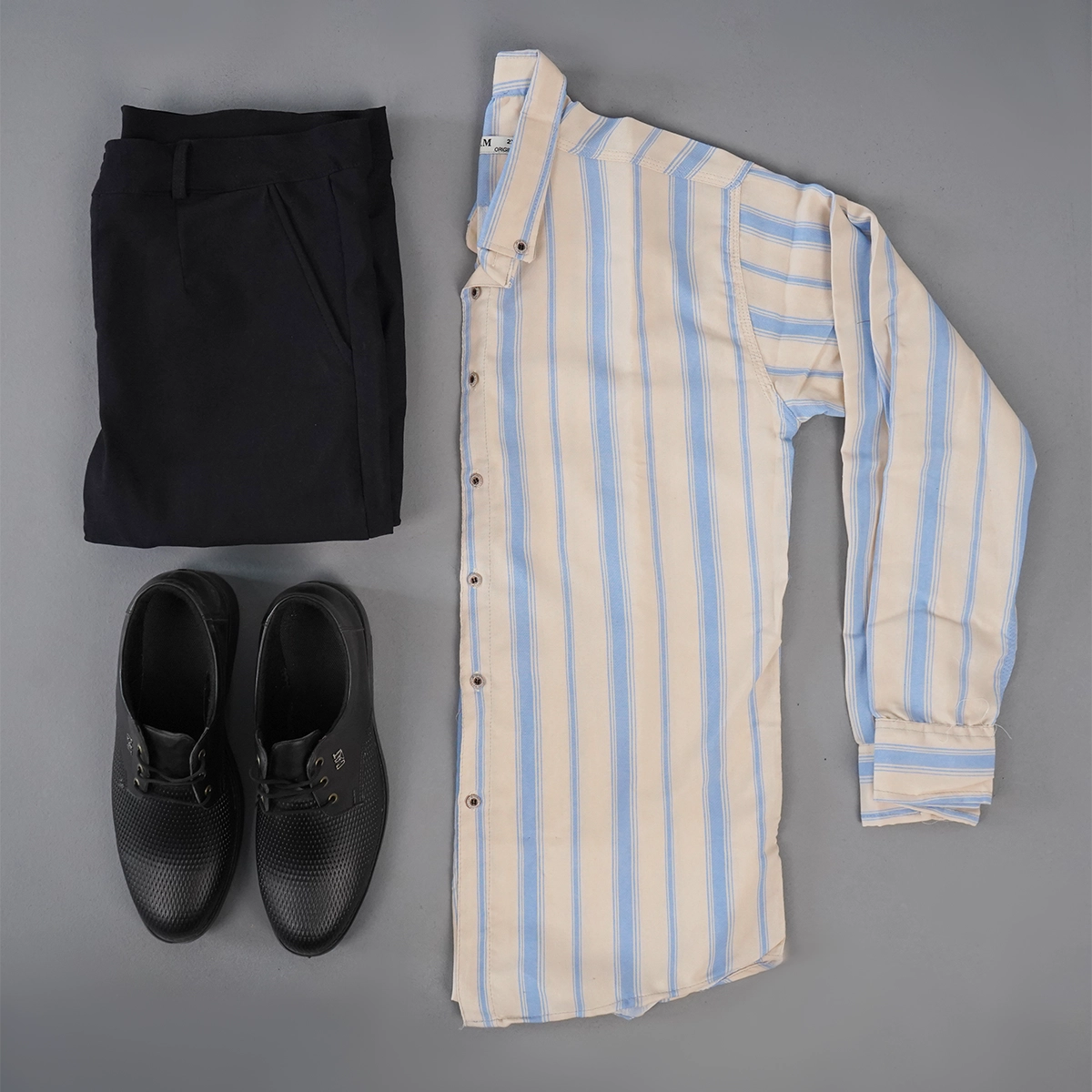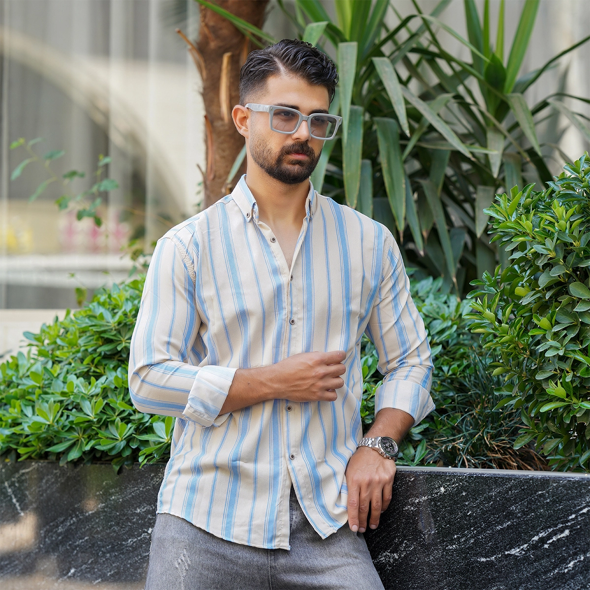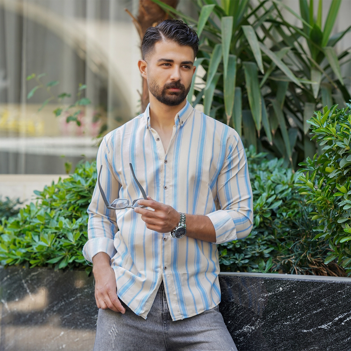 پیراهن راه راه زرد آبی مردانه مدل Ramin