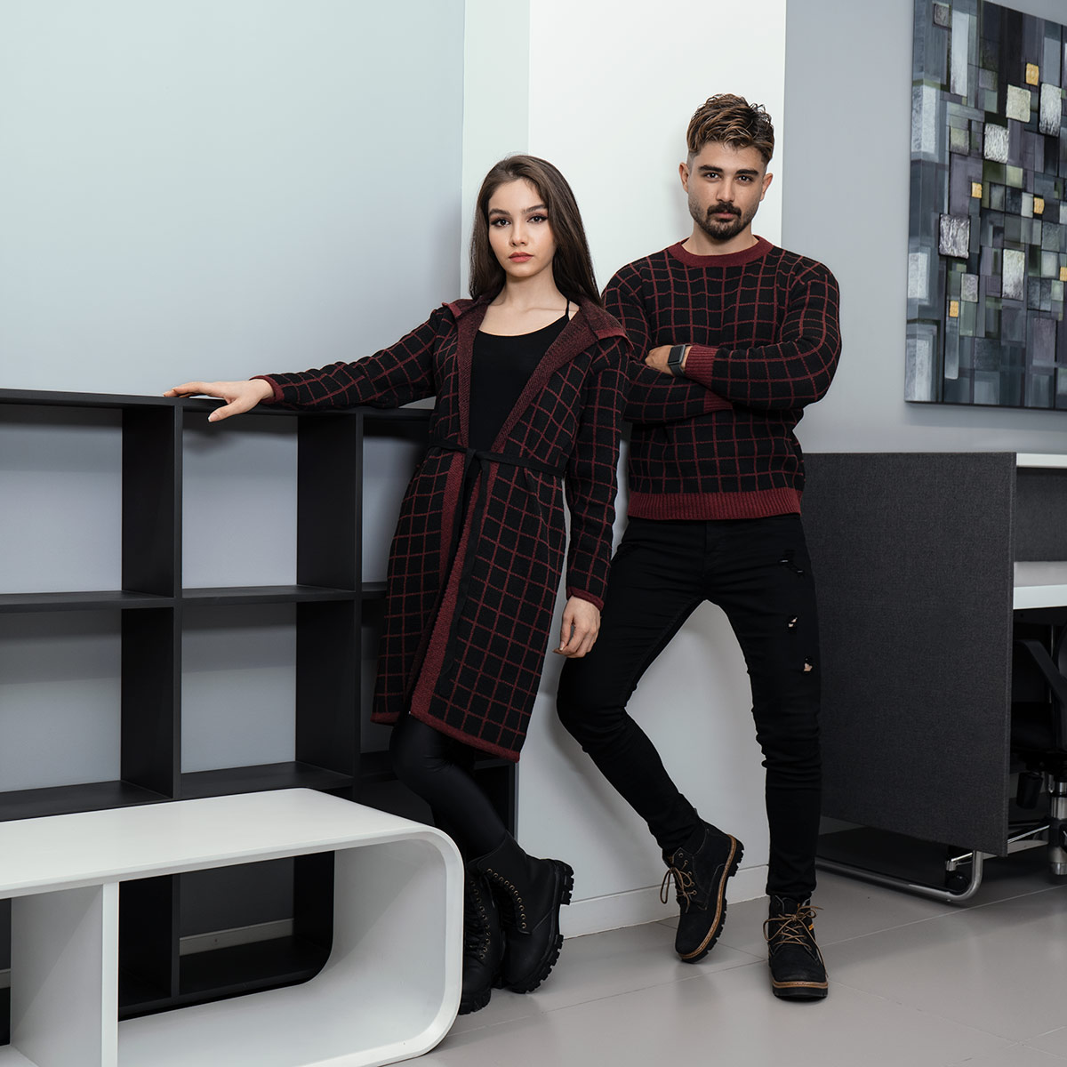 رنگبندی : مشکی - زرشکی (طرح 4 خانه)
