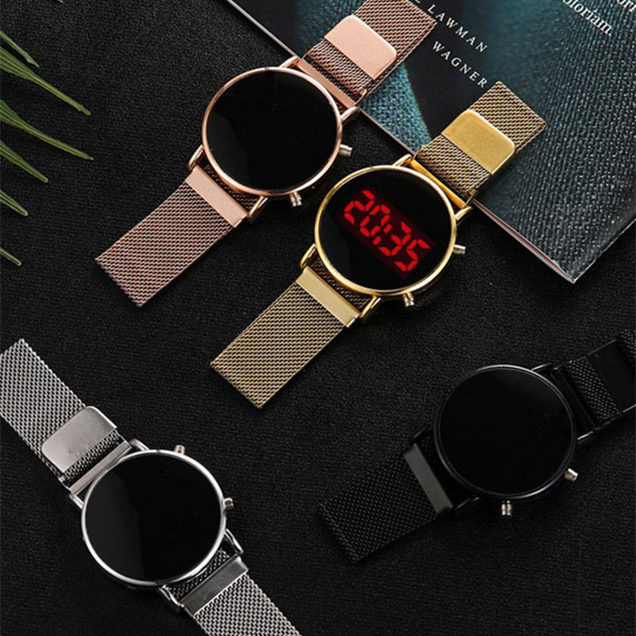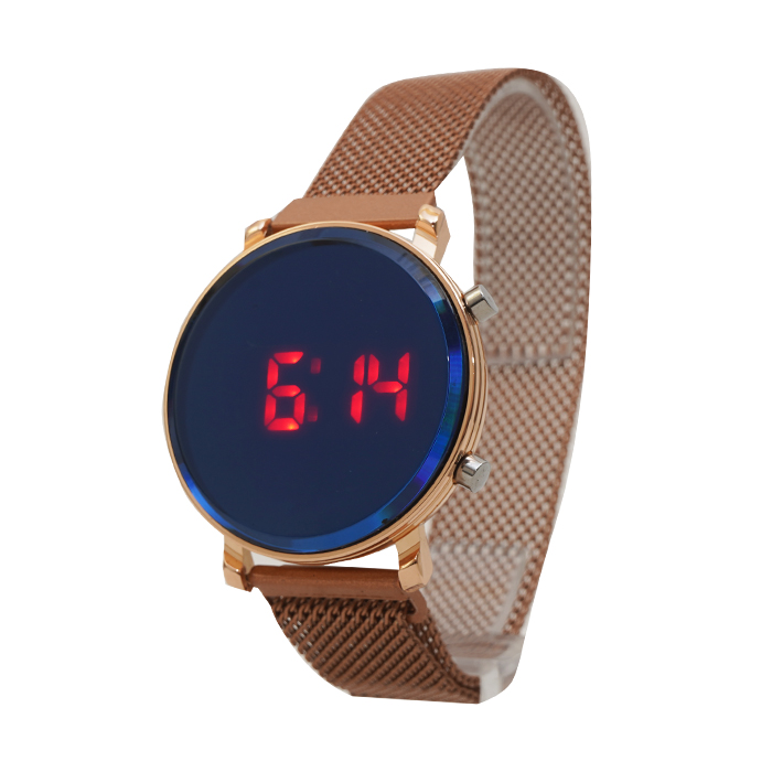 ساعت LED بند فلزی رزگلد مدل Ronas